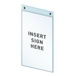 Made from acrylic for high durability, scratch resistance and clarity. Portrait style sign holder for wall mounted signage.